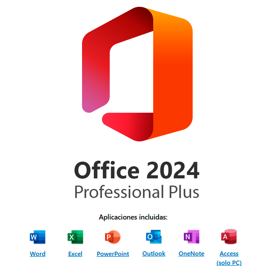 Versiones clásicas de 2024 de Word, Excel, PowerPoint y Outlook instaladas en un PC, ademas Microsoft Access (solo PC)